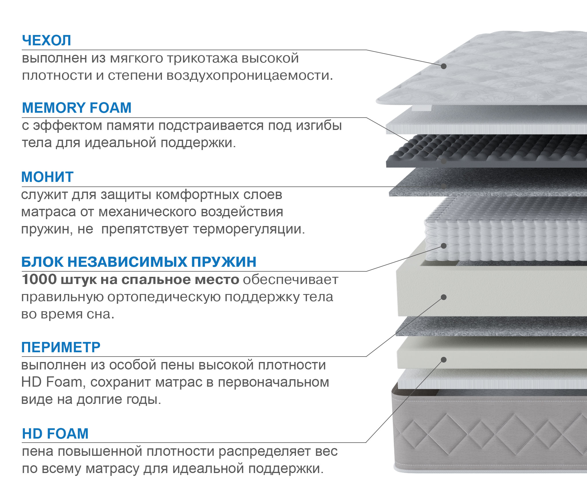 Блок независимых пружин (мультипакет) 800 пр/спальное место